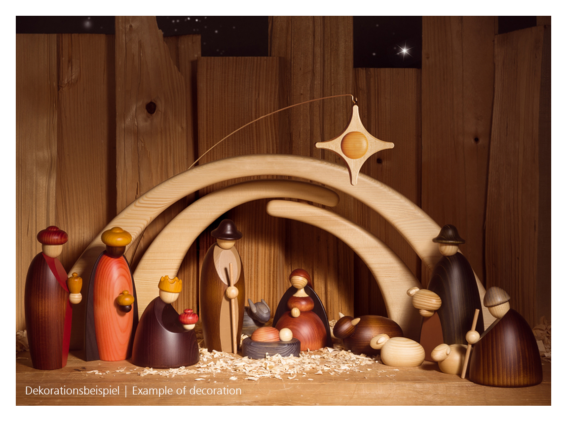 Durch ihre zeitlos klaren Formen, ihre ausgewogene lasierende Farbgestaltung und die hochwertige Verarbeitung bringen diese Figuren das Wunder der Christgeburt in die Weihnachtsstuben – für viele, viele Jahre. Die Krippen sind aufwendig von Hand gefertigt.