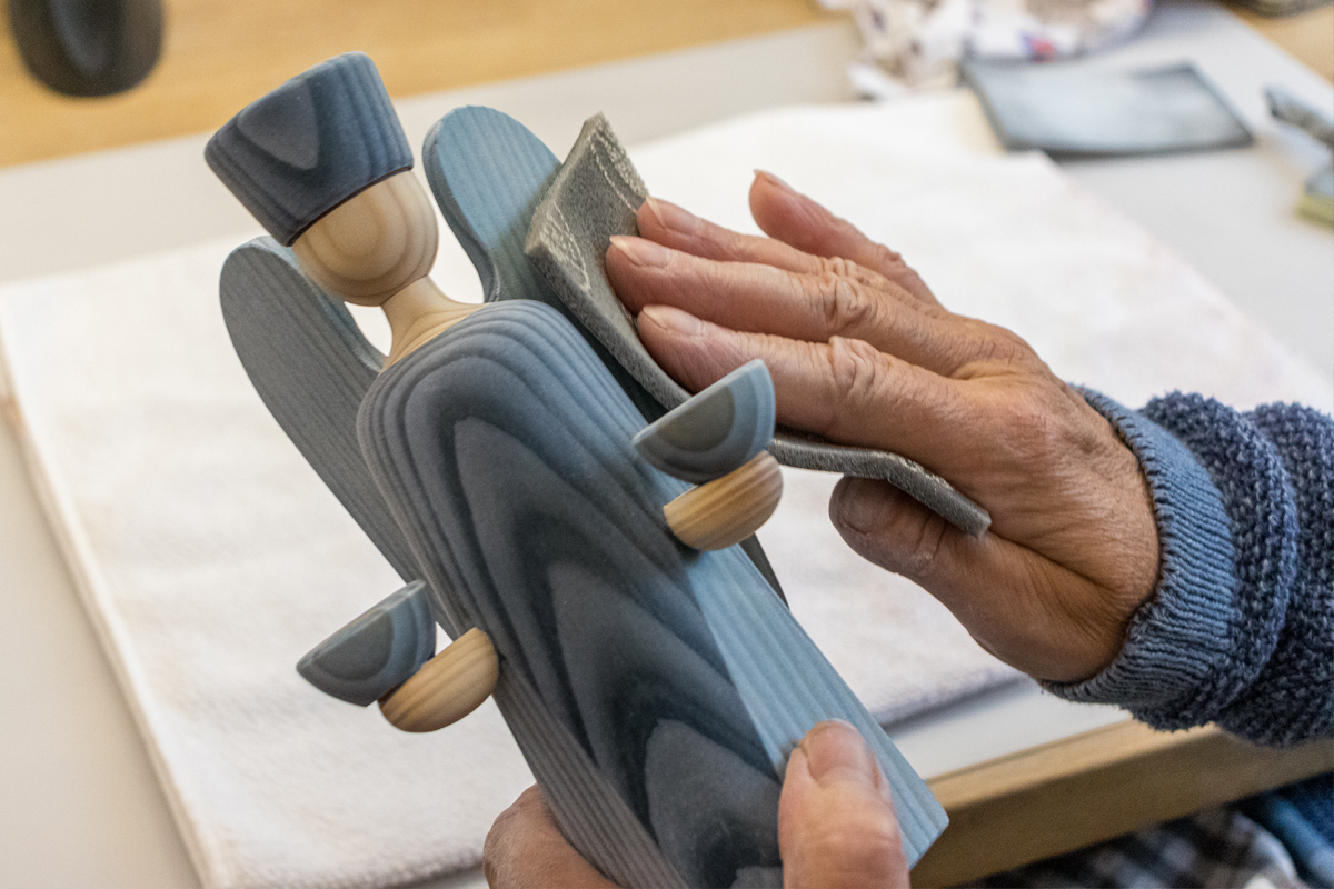 Auch beim Colorieren der in Kleinserie gefertigten Flügelwesen braucht es eine ruhige Hand. Jeder unachtsame Pinselstrich würde unweigerlich die Figur verderben.