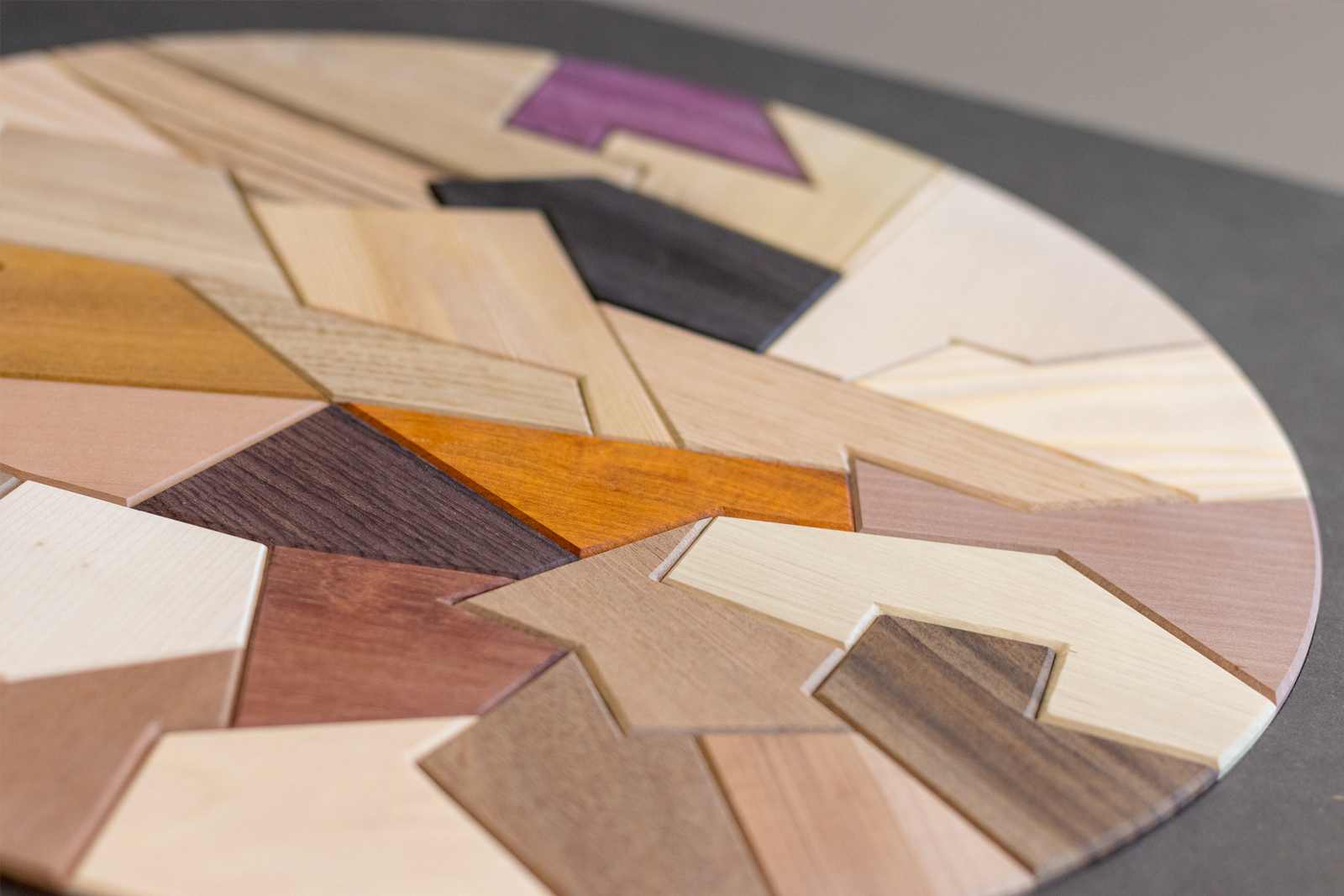 Das Puzzle vereint eine beeindruckende Bandbreite an Holzarten. Von A wie Apfelbaum bis Z wie Zebrano, sind viele bekannte, aber auch seltene exotische Hölzer zu sehen. Durch die Farb- und Maserungsvielfalt entstand so ein lebendiges Mosaikbild, das die Vielfalt der Natur widerspiegelt.