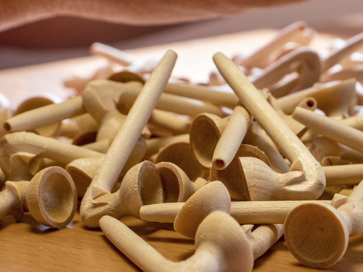 - Das Korpus-Drechselteil mit Bohrung am schmalen Ende, in das später das Mundstück eingesetzt werden kann.