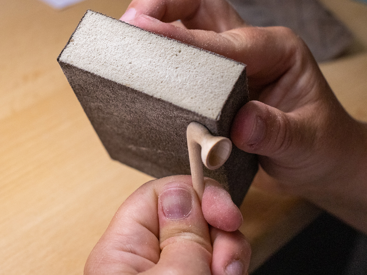 - Danach wird die Biegung mit Sandpapier und Schleifschwamm für eine fühlbar feine und glatte Oberfläche fein verschliffen.