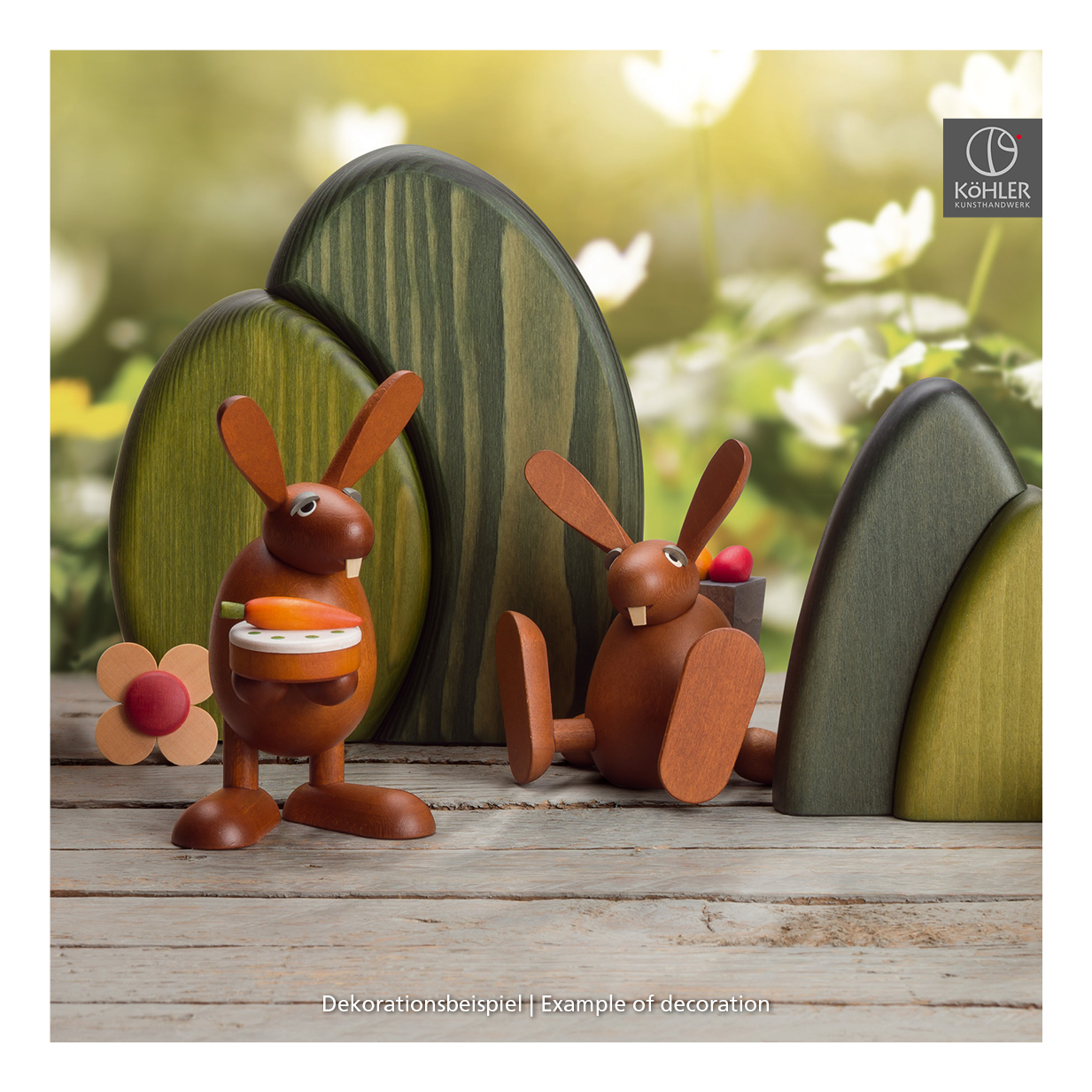 The Köhler manufactory had not have the Easter Bunnies in the assortment for a long time. After a first, limited restage in 2017, we got great feedback from our fans. Therefore, we decided to produce a limited edition again in 2018 and 2019. All Easter Bunnies are made of maplewood and their surface is as usual of high quality, which you can even feel.