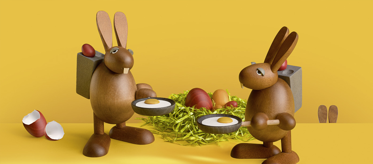 Holiday meeting in the Bunny family. And some Bunnies of our manufactory accepted an invitation joyfully. As every spring, we are once again creating a small Easter bunny collection this year, which is lovingly handcrafted from fine maple wood in our manufactory. The funny figures are only available while stocks last.