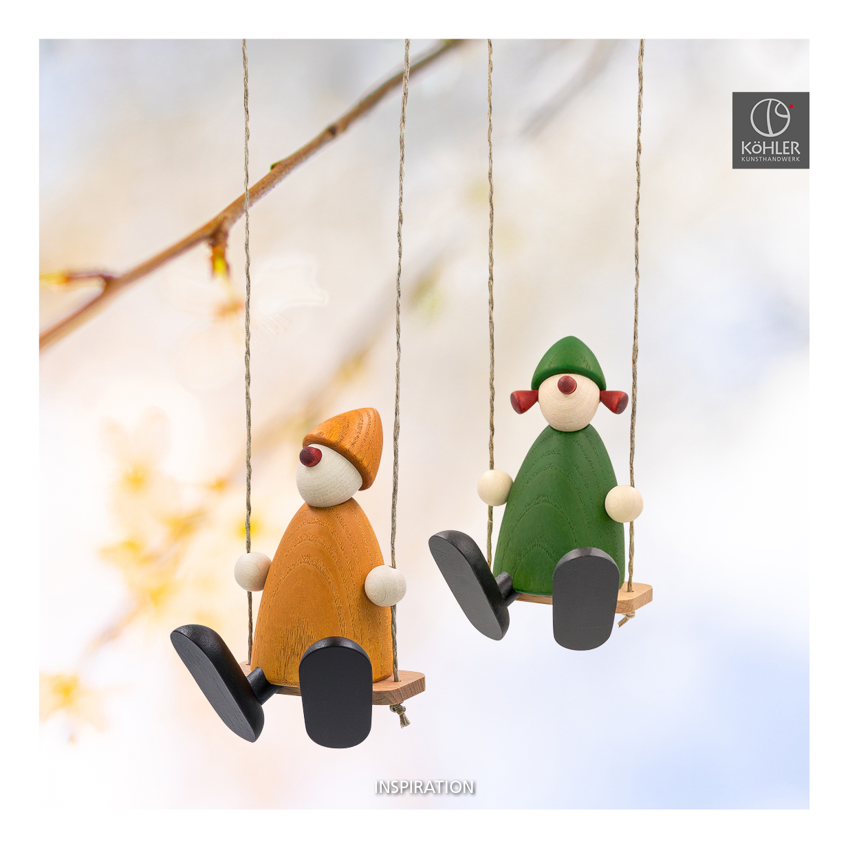 Dressed in spring-like green, Frieda swings with ease on her swing, touching everyone's heart. As a springtime greeting, a loving gesture, or an original gift, she brings lightness, joy, and a playful touch to any occasion.