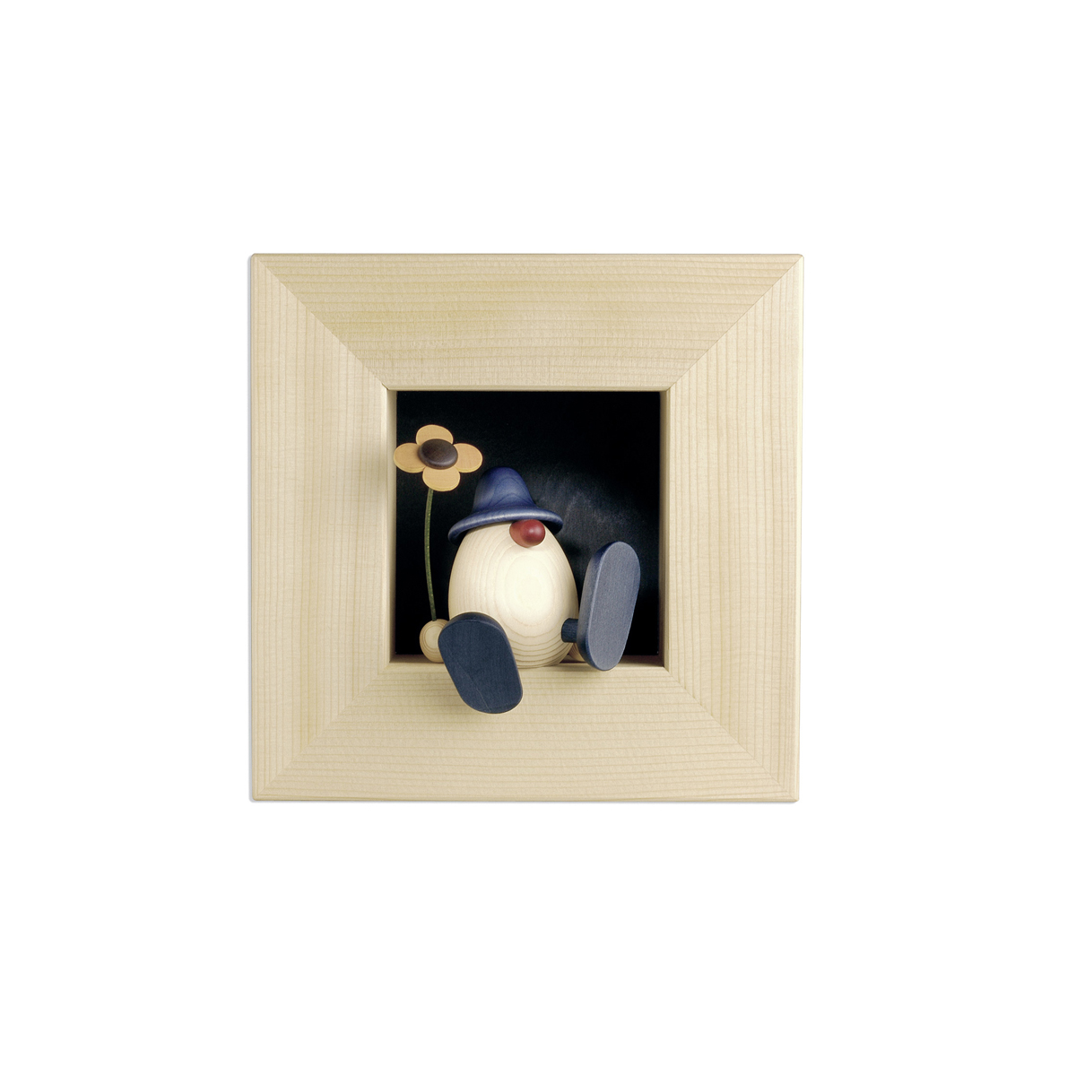 Our figurines make beautiful wall decorations when they are placed in a spruce frame. Depending on the occasion or season, the frames can be customized, e.g. with our well-wishers, eggheads or little Santas. Due to the depth of 3.1 inches, this creates three-dimensional wall pictures.