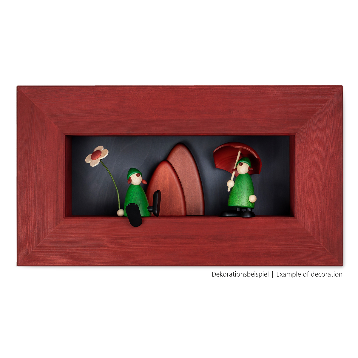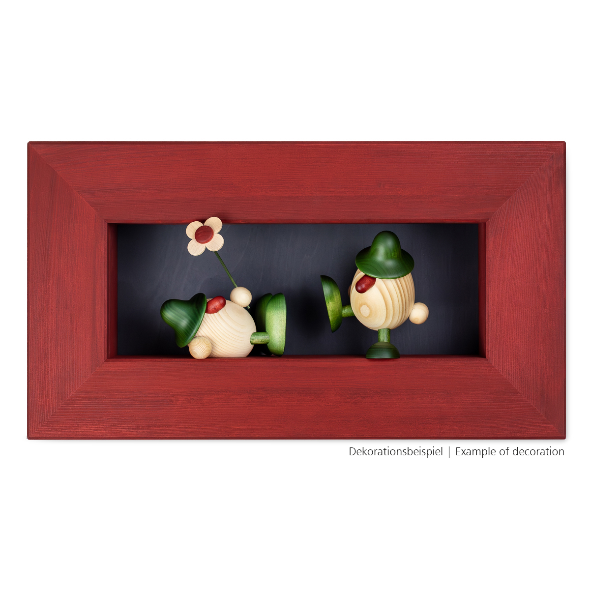 Our figurines make beautiful wall decorations when they are placed in a spruce frame. Depending on the occasion or season, the frames can be individually decorated, e.g. with our well-wishers, eggheads or little Santas. The depth of 3.1 inches creates three-dimensional wall pictures.