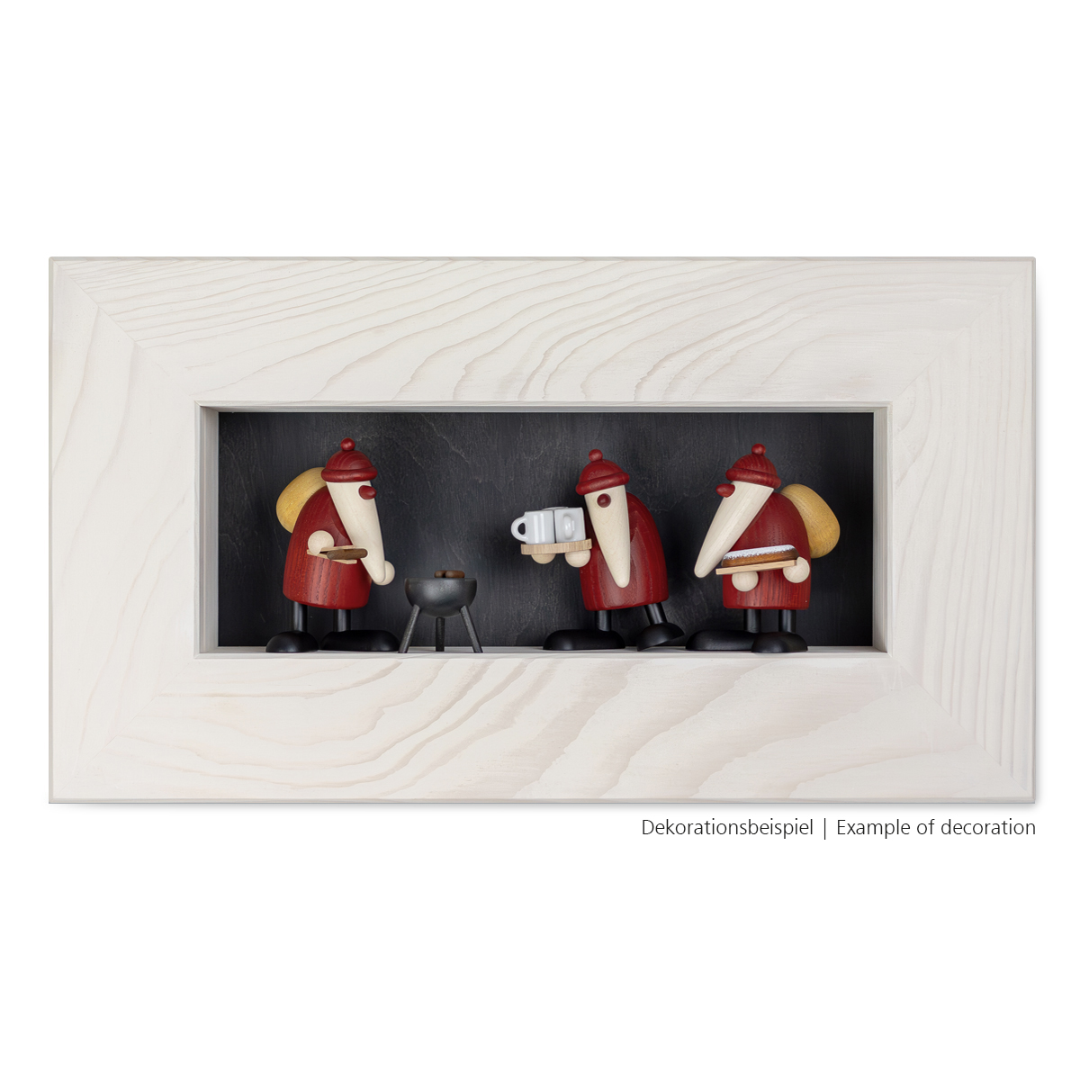 Our figurines make beautiful wall decorations when they are placed in a spruce frame. Depending on the occasion or season, the frames can be individually decorated, e.g. with our well-wishers, eggheads or little Santas. The depth of 3.1 inches creates three-dimensional wall pictures.