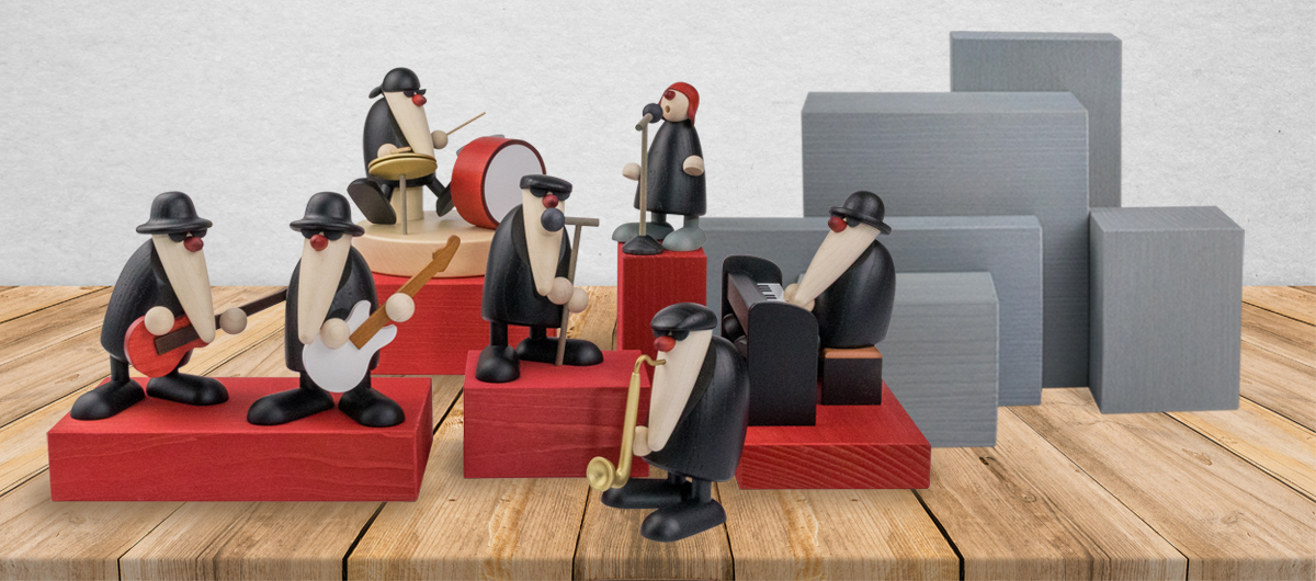 Mit den verschiedenen, sorgfältig gefertigten Keilen und Klötzen setzen Sie unsere Figuren besonders schön in Szene. Durch verschiedene Höhen ist es möglich, kleine Landschaften zu bauen oder unseren Winterfreunden auf Ski oder Schlitten den richtigen Schwung zu verleihen. Die Keile und Klötze sind in drei verschiedenen Lasur-Farben erhältlich.