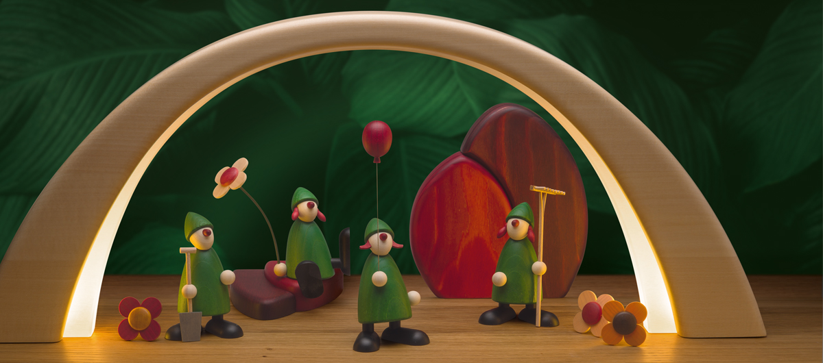 Mit dem LED-LichtBogen erhalten die Figuren aus unserer Manufaktur einen stimmungsvoll beleuchteten Lieblingsplatz. Der LichtBogen vereint perfekt verarbeitetes Lindenholz mit den Möglichkeiten moderner Lichtführung auf besondere Weise. Damit lassen sich zu jeder Jahreszeit wunderbar dekorative Szenen für Ihre Lieblingsstücke aus unserer Manufaktur erstellen.