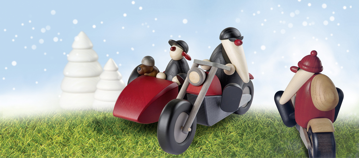 Zwischenzeitlich haben unsere Figuren jede Menge Fahrzeuge für sich entdeckt. Auf Ski, Snowboard und Schlitten genießen sie den Winter. Im Sommer kommen Sie als Biker auf Motorrad und Gespann daher. Oder durchqueren das nasse Element mit Boot und Kajak. Und weil viele Fans diese Fahrfreude teilen, sind unser Fahrfreunde mit Sicherheit ein willkommenes Geschenk.