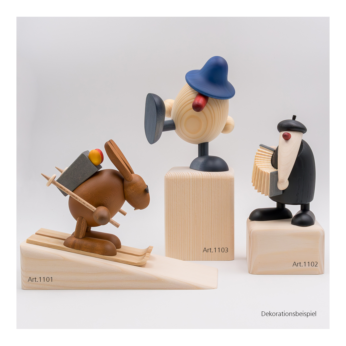 Mit unseren Keilen und Klötzen haben Sie die Möglichkeit unser ganzes Sortiment zu jeder Jahreszeit stilvoll zu präsentieren. Durch verschiedene Höhen der Klötze ist es möglich, kleine Landschaften zu bauen, die dann mit Weihnachtsmännern, Gratulanten, Eierköpfen und Bäumen individuell bestückt werden können.