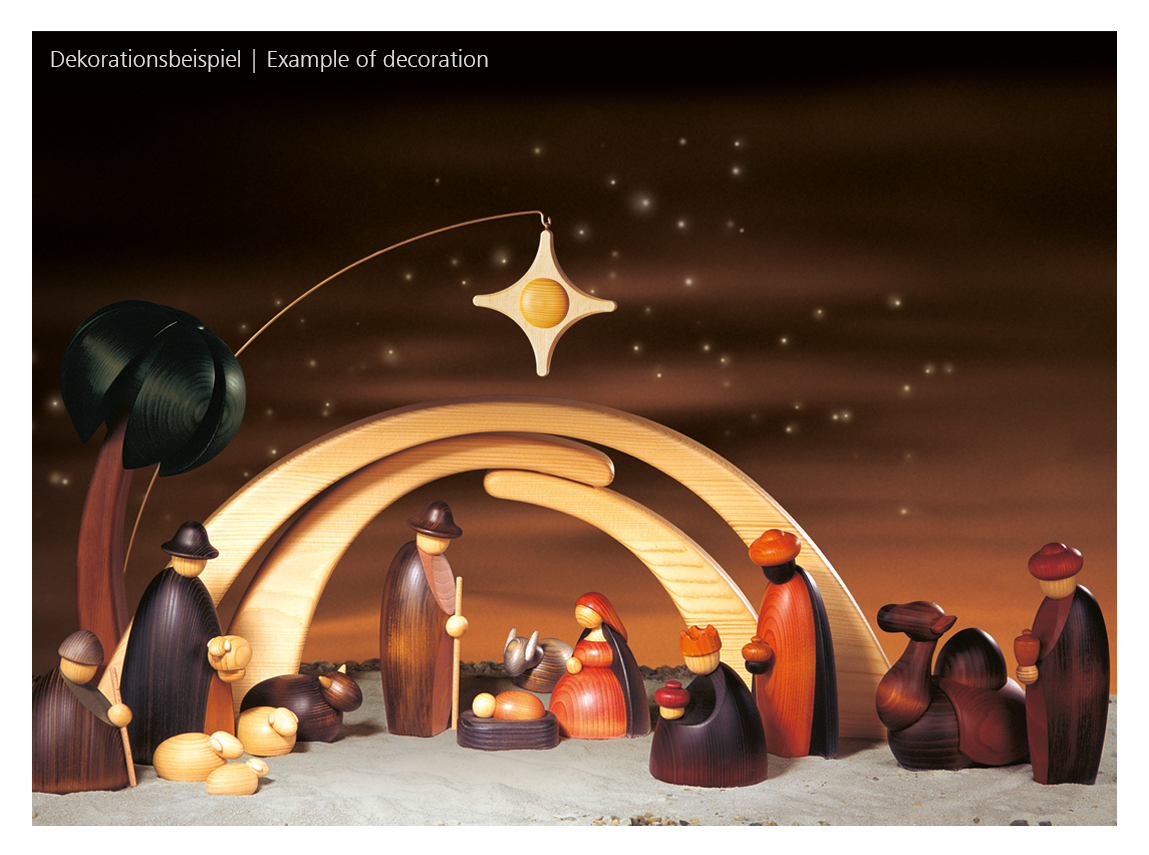 Die Palme wird in extrem aufwändiger Handarbeit gefertigt. Durch ihre zeitlos klaren Formen, ihre ausgewogene lasierende Farbgestaltung und die hochwertige Verarbeitung bringen diese Figuren das Wunder der Christgeburt in die Weihnachtsstuben – für viele, viele Jahre.