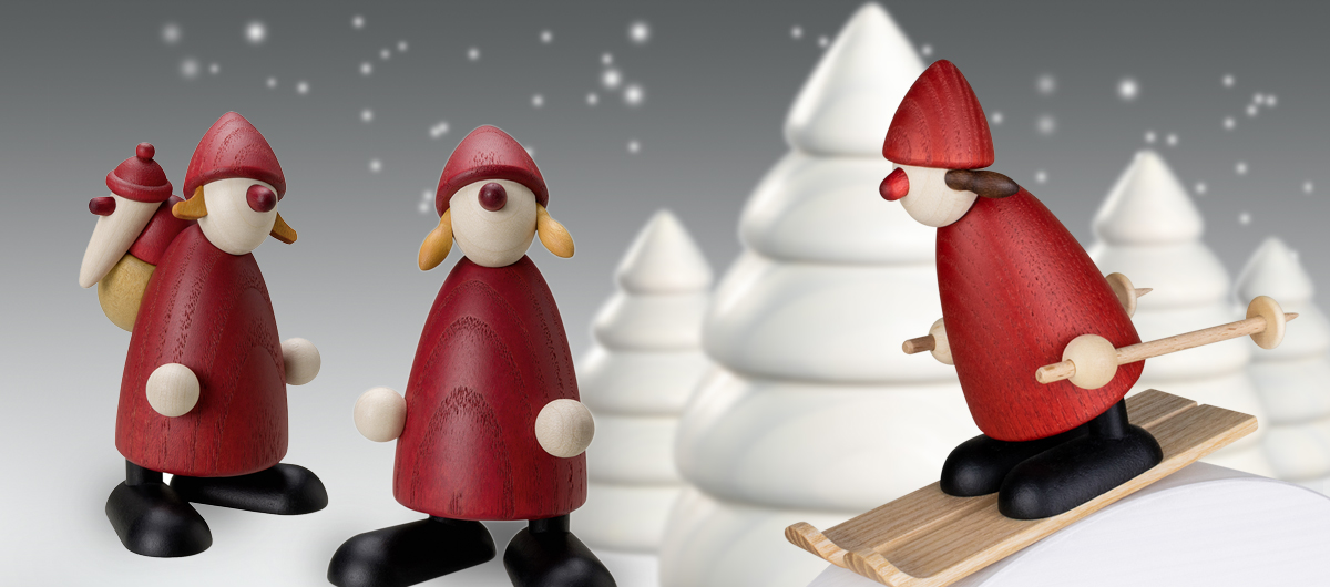 Die kleinen Weihnachtsfrauen stehen den Weihnachtsmännern seit Jahren stilecht – mit roter Nase – gleichberechtigt zur Seite. Mit ihrer Höhe von ca. 9 cm sind die kleinen Weihnachtsfrauen kombinierbar mit allen kleinen Weihnachtsmännern, den Bäumen sowie Elch und Rentier.