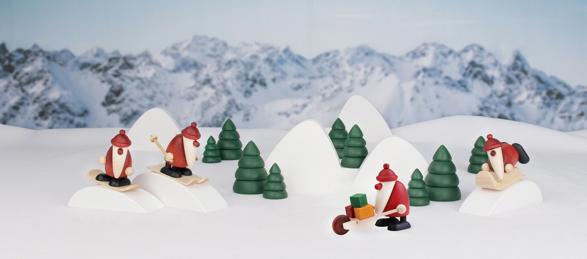 Bisher hatten sie nur im Verborgenen emsig ihr weihnachtliches Werk getan. Doch seit einiger Zeit sind die klitzekleinen, rotnasigen Helfer in mittlerweile acht detailreichen Sortierungen selbstbewusst ans Tageslicht getreten. Mit verschiedenen Baumgruppen und Winterlandschaften – freistehend als muntere Tischdekoration oder als besondere Pyramidenbestückung – sind die kleinen Weihnachtswichtel ein echter Hingucker.